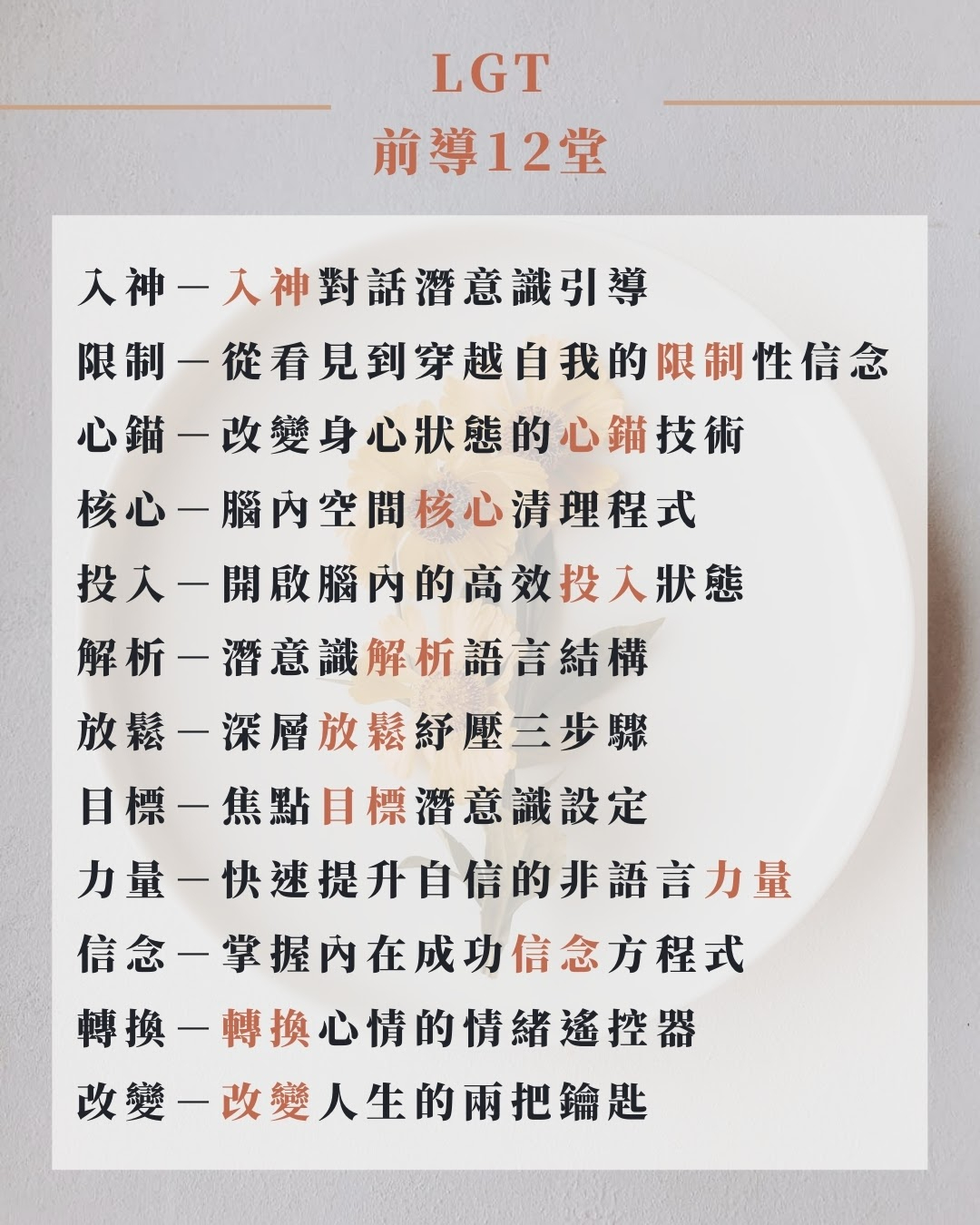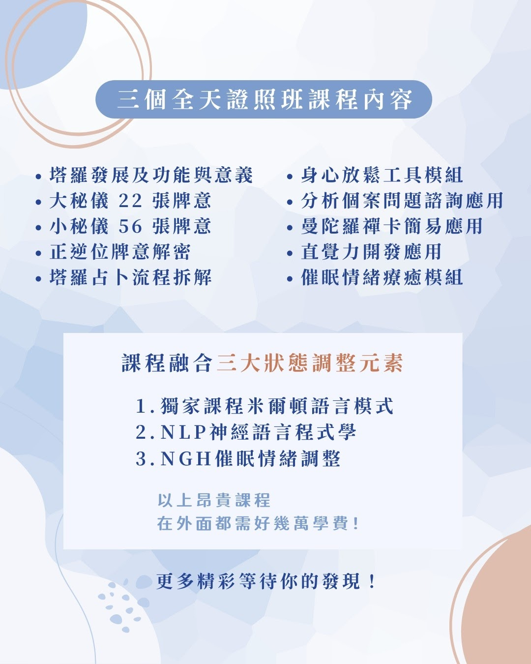 課程結合NLP神經語言學及NGH催眠調整