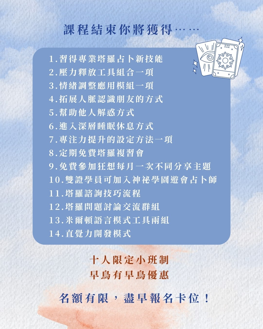 目前已培育出多位以上正職的塔羅占卜師